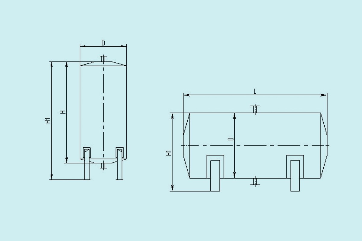 Конструктивно емкости безнапорного типа представляют собой цилиндрические сварные сосуды с торцами плоской или конической формы. Установка вертикальных баков выполняется на опоры-лапы наземным способом на ж/б основание. Горизонтальные емкости устанавливаются на ложементы или опоры седлового типа.