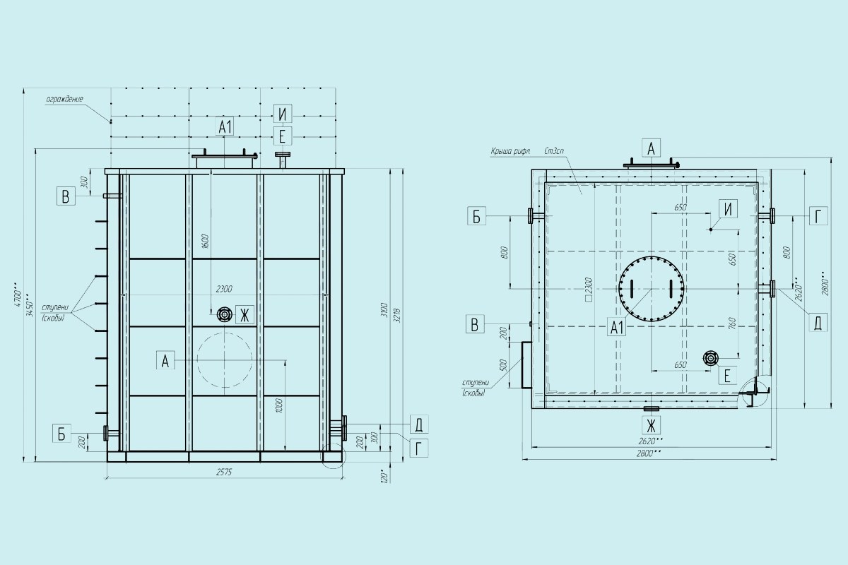 Чертеж Прямоугольные резервуары